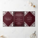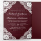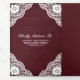 Invitación Tríptica Boda Rústico Burgundy Wood Lace String Lights