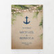 Sorprenda a sus huéspedes con esta elegante boda temática de una sola playa que presenta una tipografía moderna sobre un fondo rústico de arpillera con una tarjeta RSVP desmontable. Simplemente agregue los detalles de su evento en esta plantilla fácil de usar y adorne esta tarjeta con su foto favorita para convertirla en una invitación única y personalizada.