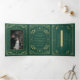 Invitación Tríptica Boda Tarot Gold y Emerald Elegant