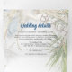 Muestra todos los detalles de tu boda con este tema de playa moderno triple 3 en 1 invitación matrimonial con un fondo blanco clásico, caligrafía azul profundo del océano y fuente cursiva y follaje de palma de playa tropical de color agua con signos rústicos de madera, cuerdas y estrellas acuáticas. Incluye una foto de la pareja feliz, y la invitación a la boda. Los clientes pueden cortar fácilmente la tarjeta postal RSVP y enviarla por correo. Edite fácilmente toda la información con los detalles de su boda utilizando la plantilla proporcionada. Invitaciones de boda todo en uno a precios asequibles que harán las delicias de sus invitados.
