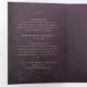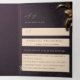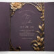 Traslade a sus huéspedes a una era de romance eterno con esta invitación a la boda Tri-Fold inspirada en el Teatro Vintage. El diseño rebosa el encanto de lo antiguo, combinando un fondo de textura violeta con una decoración metálica dorada. Esta invitación triple se despliega para revelar una sección de RSVP, completa con opciones de comida y detalles de eventos. Personalizar por un toque único que capta la magia de su día especial.