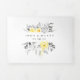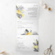 Este moderno boda tropical, todo en un triple pliegue, es perfecto para su boda boho de verano. Diseñado con elegantes y clásicas flores amarillas que salen de la vegetación gris costera, incluyendo la hoja de palma y el helecho. Las flores de color y las hojas grises le dan un toque bohemio a la playa.