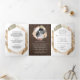 Invitación Tríptica Boho Pampas Wreath Dried Palm Wood 3 en 1 Boda