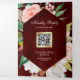 Invitación Tríptica Borgoña Rubor Pink Floral Gold Boda de código QR
