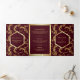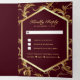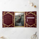 Invitación Tríptica Burgundy Gold Flourish Swirl Wedding Photo