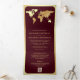 Invitación Tríptica Burgundy Gold World Map QR Code Photo Wedding