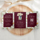 Invitación Tríptica Burgundy Wood Daisies Mason Jar QR Code Wedding