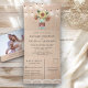 Sorprenda a sus huéspedes con esta elegante invitación de boda, que incluye un tarro de albañil vintage y hermosos girasoles sobre un fondo rústico de arpillera con una tarjeta postal RSVP desmontable. Simplemente agregue los detalles de su evento en esta plantilla fácil de usar y adorne esta tarjeta con su foto favorita para convertirla en una invitación única.