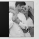 This exquisite tri-fold wedding invitation stands out for its minimalist black and white design, blending sophistication and modernity. On both the cover and the interior, four strategically placed photographs enhance the beauty of the design, capturing special moments and adding an intimate, personal touch to the invitation. These images, positioned both inside and out, harmonize seamlessly with the refined aesthetic of the card, creating a visually stunning and elegant composition.