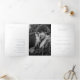 Invitación a la boda de triple pliegue con un diseño sencillo y minimalista con su monograma en la esquina superior izquierda y los detalles de su boda en la esquina inferior derecha. El panel intermedio tiene su foto favorita, el panel derecho tiene la tarjeta postal RSVP y la parte posterior tiene la tarjeta de gabinete. Todos los elementos de diseño están en azul polvoriento y pueden cambiarse en la herramienta de edición de diseño. Esta moda en una sola invitación a la boda con un diseño minimalista pero elegante va bien con cualquier estilo de boda contemporáneo.