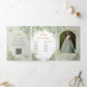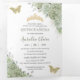 Invitación Tríptica Chic Verde Menta Floral Mariposas Quinceañera