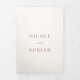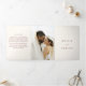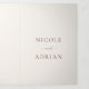 Elegante invitación tríplia de bodas con fuentes serif tradicionales en un diseño sencillo.