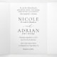 Elegante invitación tríplia de bodas con fuentes serif tradicionales en un diseño sencillo.