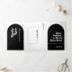 Esta es una invitación de boda plegable triple todo en uno que presenta un diseño boho minimalista moderno elegante y divertido con una fuente de escritura retro en forma de arco sobre un fondo negro junto con una foto y un código QR. La simplicidad de este diseño añade un toque de elegancia a tu boda. Funciona bien con muchos temas de boda y definitivamente es un gran complemento para tu boda. Simplemente personaliza los nombres y el texto en unos sencillos pasos en los campos de texto y personaliza la tarjeta de invitación triple plegable todo en uno con la foto de la feliz pareja y reemplaza los códigos QR con los tuyos para darle a tu invitación un bonito toque personal. Esta invitación te ahorrará dinero para enviar todo de una vez. Tiene una tarjeta postal de respuesta que tus invitados pueden simplemente enviar de vuelta. Simplemente dobla cada tarjeta de invitación en la forma delineada, sella y envía a tus invitados. No se necesita sobre para el envío, solo franqueo.