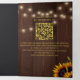 Moda rústico campo elegante verano o otoño otoño boda elegante presupuesto todo en una plantilla de tres veces de invitación de collage de fotos con escaneo de QR CODE a RSVP online y detalles de madera de granero marrón con hermosos ramos de girasoles y cuerdas de luces de trineo. +++++++++++++++++++ La invitación es apta para bodas modernos y rústicos al aire libre, en el patio trasero, en el granero o en la granja. +++++++ Fácil de personalizar con 6 imágenes de compromiso, su texto y el código QR generado automáticamente en su sitio web.