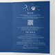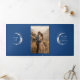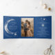 Esta invitación a una boda triplicada de azul marino combina tus preciadas fotos con un romántico tema celeste, haciéndolo perfecto para celebraciones bajo "Debajo de las estrellas", "Hacia la luna y atrás" o "Escrito en las estrellas". El diseño combina hábilmente su invitación, detalles del boda - información y RSVP en un paquete único y elegante. También tiene la opción de incorporar un código QR reemplazando la dirección URL proporcionada por la deseada. Adornado con impresionantes representaciones de una luna creciente de plata, halo de sol radiante, varios planetas, constelaciones y galaxias, resume la belleza hechizante de los cielos nocturnos. Elija mostrar una sola imagen a ambos lados o elija dos fotos distintas para obtener más diversidad.