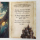 Fantástica invitación de boda tipo cuento de hadas hecha en un viejo libro de cuero con aspecto de triple invitación. El interior de la invitación, con páginas hechas como antiguas letras antiguas, está decorado con dragones y un castillo. Personalice todos los campos de texto para su invitación especial de bodas.
