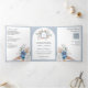 Invitación Tríptica Dusty Blue Floral Boho Pampas Boda de código QR