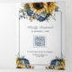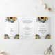 Invitación Tríptica Dusty Blue Roses Sunflowers Photo QR Code Wedding