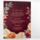 Invitación Tríptica Earthy Floral Wreath QR Código Borgoña Boda