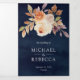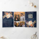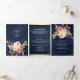 Invitación Tríptica Earthy Ivory Floral Navy Blue QR Code Boda