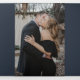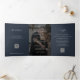 Invitación Tríptica Elegant photo navy blue wedding RSVP details QR
