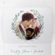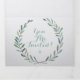 Elegante casa de campo de Cottagecore de tres vueltas Eucalyptus Wreath al aire libre Todo en una elegante invitación a la boda floral de ceniza azul y verde con un corte y enviar postal RSVP. Boho Tented Garden Bodas al aire libre.