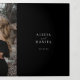 Plantilla de invitación de boda moderna simple minimalista con 2 fotos, respuesta y detalles con códigos QR que se pueden escanear con una tipografía caligráfica elegante y superposición oscura. ++++++++++++ Fácil de personalizar con una o dos fotos personalizadas (puedes subir la misma foto en ambos lados) y la información del invitado en ambos lados. La invitación es adecuada para bodas formales clásicas contemporáneas.