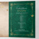 Crea tus propias y elegantes invitaciones triples quinceaneras usando una lujosa plantilla de color verde esmeralda y oro que se puede personalizar fácilmente con 3 fotos/fotos y una redacción personalizado. El diseño floral tradicional mexicano ilustrado por el artista Raphaela Wilson presenta papel pergamino antiguo, hermosas rosas rojas y acentos de oro vintage para la corona de princesa/ tiara, viste borde de fibra y confeti de mariposa de bonito. El texto en inglés se puede cambiar simplemente por el español, y con un amplio espacio en 6 paneles de papel, suficiente espacio para añadir detalles del programa/recepción, información rsvp, los nombres de los invitados a los que te gustaría expresar un gran agradecimiento, múltiples imágenes de Mis Quince Anos y más. Si decide personalizar del tema de la mariposa dorada más adelante, puede cambiar los colores de fondo y reubicar todos los gráficos para crear las elegantes invitaciones triples justo para su quinceañera verde y dorada, boda, fiesta de cumpleaños esmeralda dulce de 16 años, baile de máscaras u otro evento especial. Si desea un estilo de tipografía diferente, puede cambiar el guión de caligrafía y las fuentes modernas a las de su elección. ¡Disfruta creando tus propias invitaciones plegadas! Categoría: invitaciones a la quinceañera charro/charra con fotos; elegante tema de la mariposa de quinceañera; y lindas invitaciones de cumpleaños de quinceañera con imágenes. Colores de membrillo tradicionales mexicanos con temática verde y dorada: verde esmeralda oscuro, jade, verde azulado, blanco, bronceado, dorado amarillo y negro.