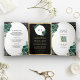 Invitación Tríptica Emerald Green Floral Black Marble QR Code Wedding