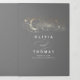 Invitación Tríptica Estrellas lunares Boda celestial gris y oro