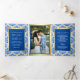 Invitación Tríptica Faux Relieve metalizado dorado Royal Blue Damask W