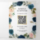 Invitación Tríptica Floral azul marino todo en un Boda de código QR