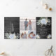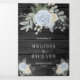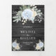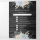 Invitación Tríptica Floral de marfil azul en un Boda de madera