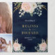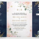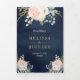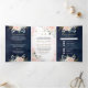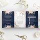Invitación Tríptica Floral rosa dorada Rubor en un Boda de la marina