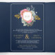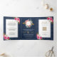 Invitación Tríptica Floral rosa fucsia en Boda de marina Escudo