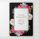 Invitación Tríptica Floral rosa fucsia en un Boda negro Escudo