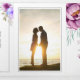 Invitación Tríptica Flores de acuarela moradas foto floral boda