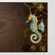Invitación Tríptica Fondo de madera con caballito de mar mecánico