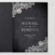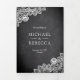Sorprenda a sus invitados con esta elegante invitación de boda todo en uno que presenta hermoso encaje blanco sobre un fondo de pizarra negra con tarjeta de RSVP desmontable. Simplemente agregue los detalles de su evento en esta plantilla fácil de usar y adorne esta tarjeta con su foto favorita para hacer que sea una invitación única.