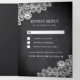 Invitación Tríptica Foto de boda de encaje blanco sobre pizarra negra
