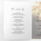 Invitación moderna de boda trifold que presenta un diseño simple con "la boda de" en una tipografía de escritura de estilo rústico junto con los detalles de su boda sobre su foto favorita con una superposición opaca. A la derecha está la tarjeta postal de RSVP y a la izquierda está la tarjeta de inclusión. Esta elegante invitación con un diseño minimalista es ideal para cualquier estilo de boda.