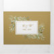 Una elegante invitación de aniversario de bodas de oro número 50 todo en uno tri-fold que presenta follaje de vegetación en acuarela, tipografía dorada chic y su foto especial en el reverso. La invitación incluye los detalles de su celebración y una tarjeta RSVP desmontable. Diseñado por Thisisnotme©
