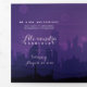 Comience su quinceañera con la dramática invitación de la noche parisina en tonos oscuros de violeta y rosa. El paisaje parisino incluye la Torre Eiffel y otros monumentos bajo un cielo nocturno lleno de fuegos artificiales que explotan. En el interior se muestra una foto horizontal de gran tamaño. Personaliza con todos los detalles para el servicio masivo, la recepción y la fiesta de cumpleaños número 15. El panel posterior incluye los nombres de sus padrinos (padrinos), así como las damas y chambelanes de su corte de honor. También disponible en combinaciones de rosa y pizarra azul/rosa. Se dispone de los elementos de la invitación de coordinación y del fiesta. También apropiado para un dulce evento de dieciséis.