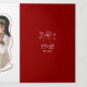 The "Drawn Together" Theme: The playful red illustrations—from the string of lights party vibes to the gourmet seafood plate—carry across all three panels, creating a visual story of your wedding day.