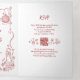 Invitación Tríptica Funky Whimsical Doodles Modern Red Wedding Photo