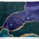 Colores de pavo real y purpurina de oro falso agate invitación a la boda de piedra con un personalizable temático espacial a sus especificaciones. Este es un paquete completo en uno con detalles de invitados y rsvp para que el destinatario pueda cortar el último panel y sacarlo.