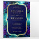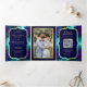 Invitación Tríptica Galaxia verde azulada Azul Mandala Código QR Códig