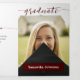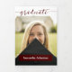 Un elegante guión anuncia a su graduado sobre su foto favorita de último año en la parte frontal. Espacio para su nombre en la parte frontal, y todos los detalles de la ceremonia dentro junto con dos fotos más. Espacio en la parte trasera para un mensaje de agradecimiento a amigos y familiares. Diseño disponible en colores escolares rojo, naranja, púrpura, verde, azul, naranja quemado, granate y negro. Productos coincidentes disponibles.