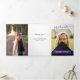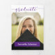 Un elegante guión anuncia a tu graduado sobre tu foto favorita de último año en la parte frontal. Bloquea su nombre en la parte frontal, y todos los detalles de la ceremonia dentro junto con dos fotos más. Espacio en la parte posterior para un mensaje de agradecimiento a amigos y familiares. Diseño disponible en los colores escolares rojo, naranja, púrpura, verde, azul, naranja quemado, granate y negro. Productos a juego disponibles.